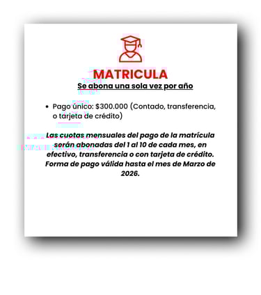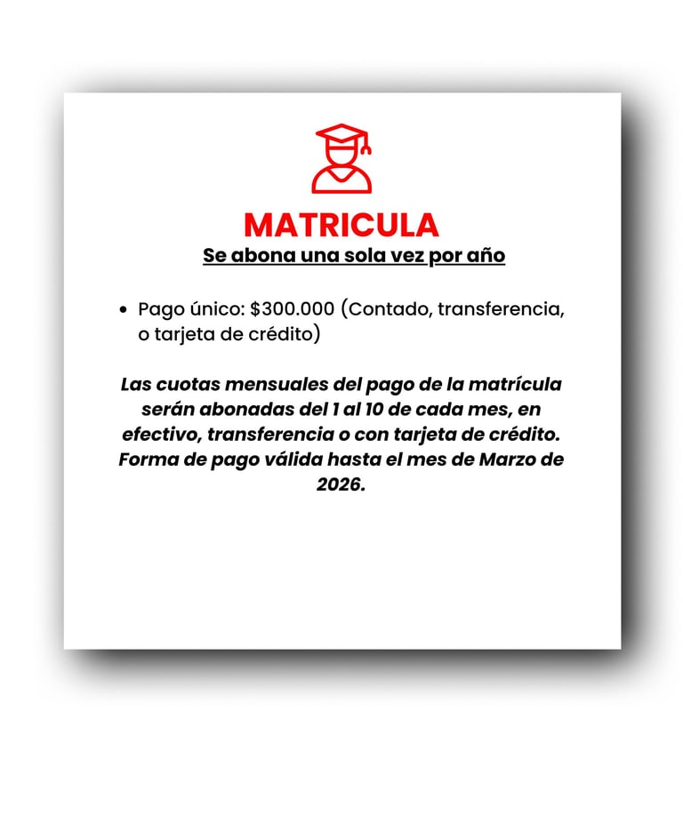 Costo de curso de ingreso: No tiene costo, debes haber abonado la matrícula solamente.
